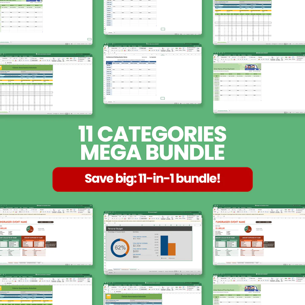 Imagine never having to stress over building spreadsheets from scratch again. With our bundle at your disposal, you’ll have access to a treasure trove of pre-built templates tailored to suit your diverse needs.